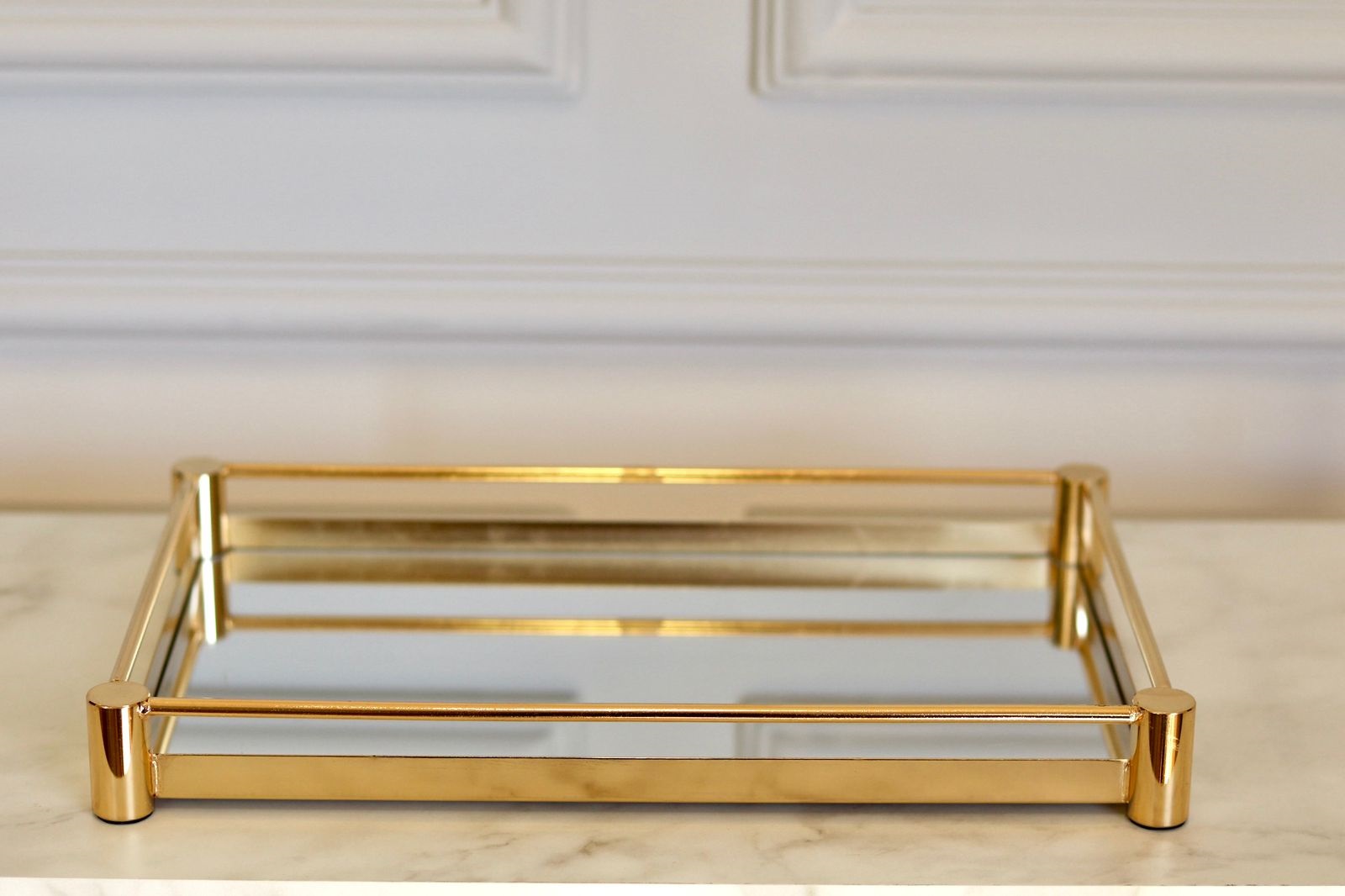 Conteúdo da Embalagem: Bandeja Dourada Em Metal Com Espelho - Tam P – Mart.