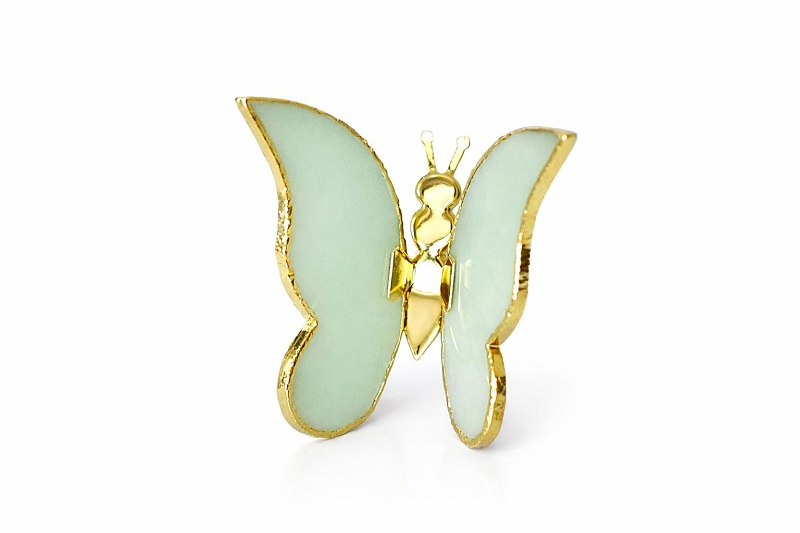 Borboleta Em Quartzo Verde Menta Com Borda Dourada