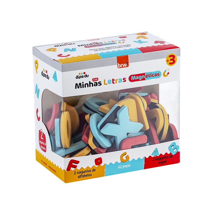 O Brinquedo EVA Imantado Alfabeto+Vogais da BRW é a escolha ideal para introduzir o universo das letras de forma lúdica, colorida e interativa. Composto por 62 peças em EVA com ímã, o kit permite que a criança aprenda todas as letras do alfabeto, com repetição de vogais, criando palavras, identificando sons e desenvolvendo a consciência fonológica - habilidade essencial no processo de alfabetização.