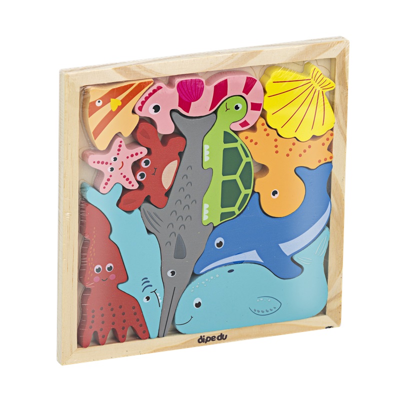 Brinquedo Madeira Encaixadinhos Fundo Do Mar - 12 PÇS – BRW