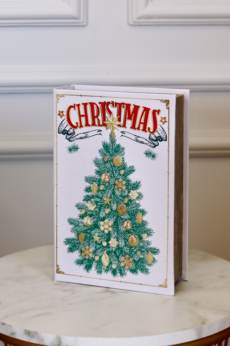 Caixa Livro De Natal Branco com Arvore - 27cm - Tokdacasa