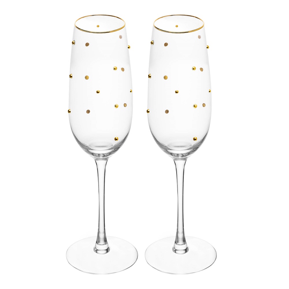 Conjunto 2 Taças Champanhe Balls Fio De Ouro 220ml - Wolff