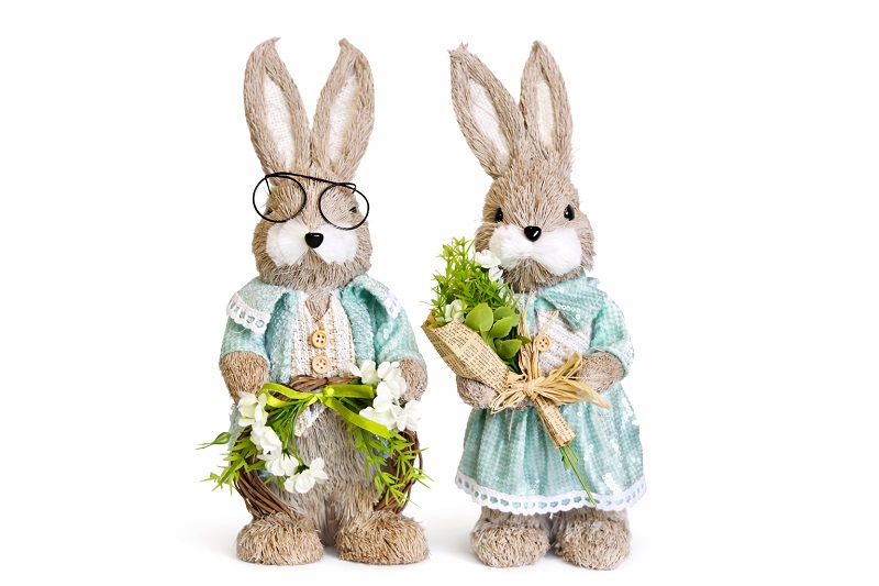 Conteúdo: 1 Decoração Casal De Coelhos Roupa Azul - 34cm - Tokdacasa.