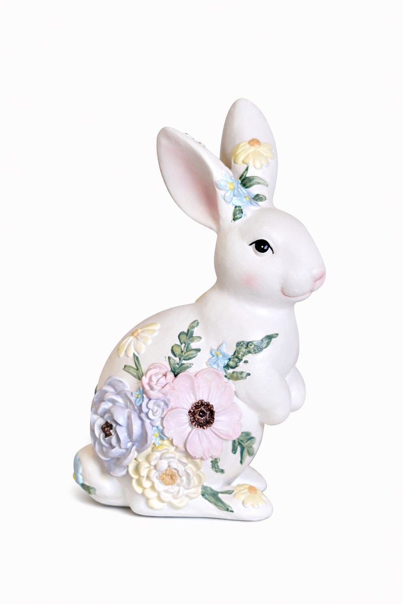 Decoração Coelho Com Flores - 17cm - C/1 UN - Tokdacasa