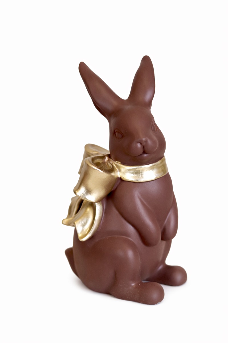 Conteúdo da Embalagem – 1 Decoração Coelho - Marrom E Ouro - 21cm - C/1 UN – Tokdacasa.