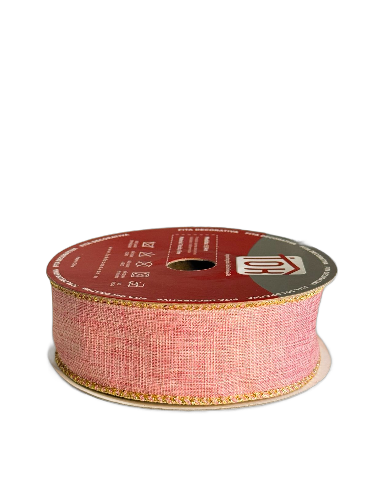 Fita Aramada Decorativa De Natal Rosa Dourado - 3,8cmx9,14m