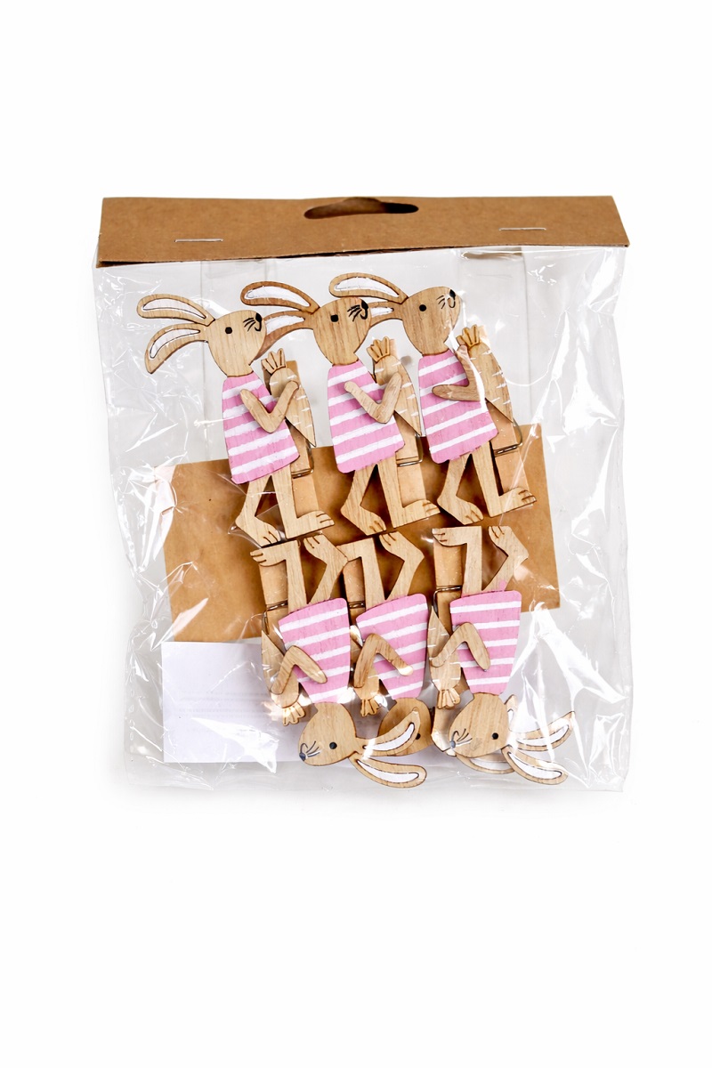 Grampo Coelho Madeira Rosa – Jogo com 6 Peças – 7cm – Tokdacasa
