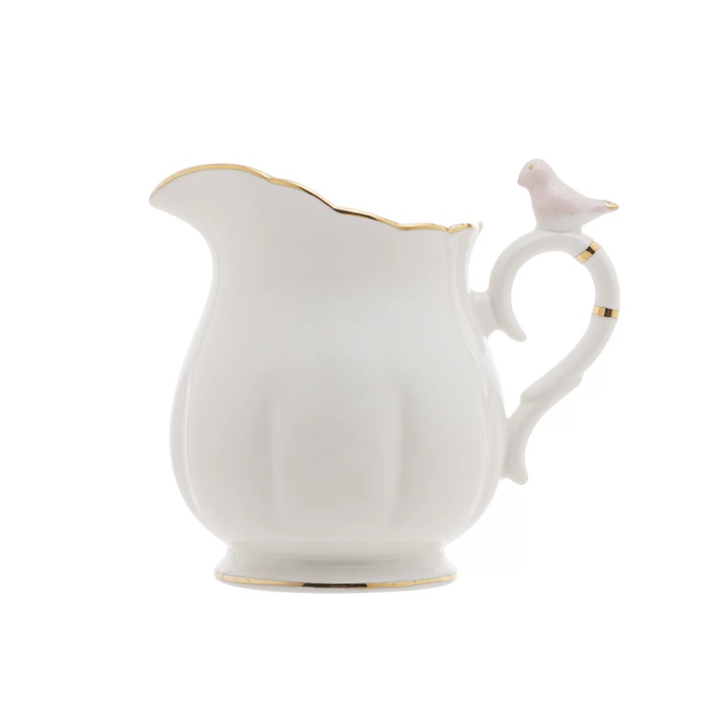 Esta leiteira possui um design encantador com detalhes de pássaros esculpidos em relevo na porcelana branca. Seu estilo delicado adiciona uma atmosfera encantadora à sua mesa.