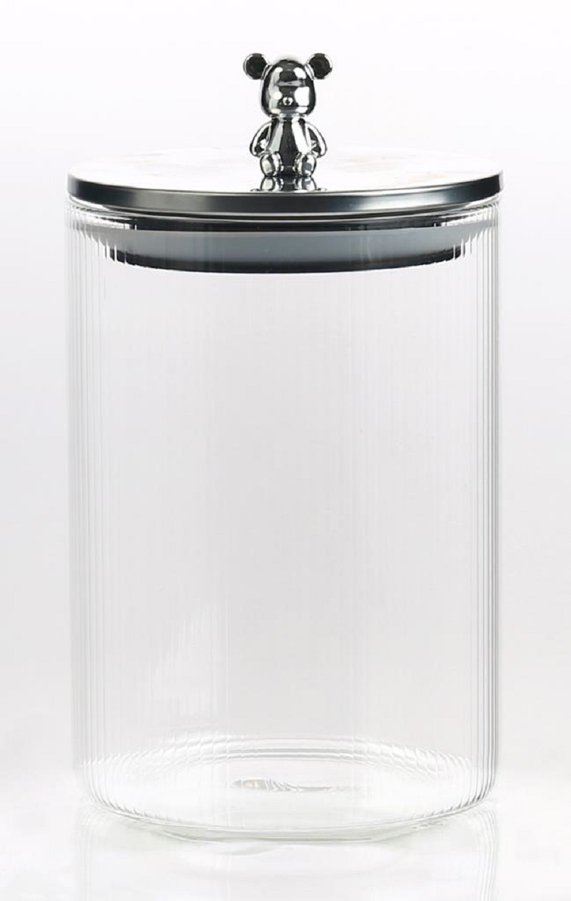 Pote Em Vidro Com Tampa Detalhe Urso Prata 16x10 - Entrecasa