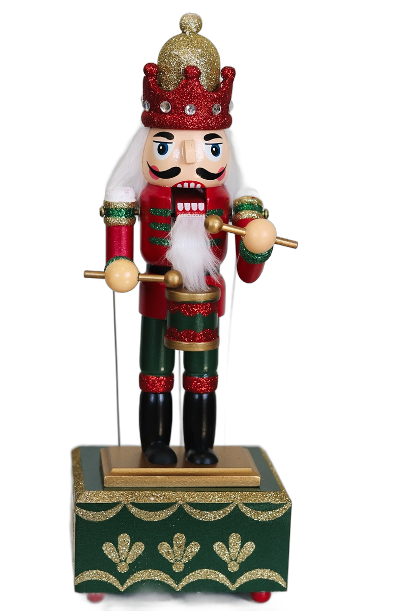 Inspirado nos tradicionais soldados do balé Quebra-Nozes, este item une beleza, som e movimento em uma peça única e sofisticada. Ideal para compor cenários natalinos com um toque mágico e nostálgico.