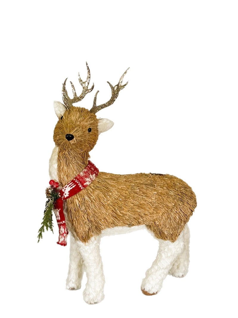 Com 53 centímetros de altura, a rena é uma presença marcante e charmosa, ideal para halls de entrada, salas de estar, vitrines, aparadores e até composições ao lado da árvore de Natal. Um item que transmite o espírito natalino com bom gosto e delicadeza.