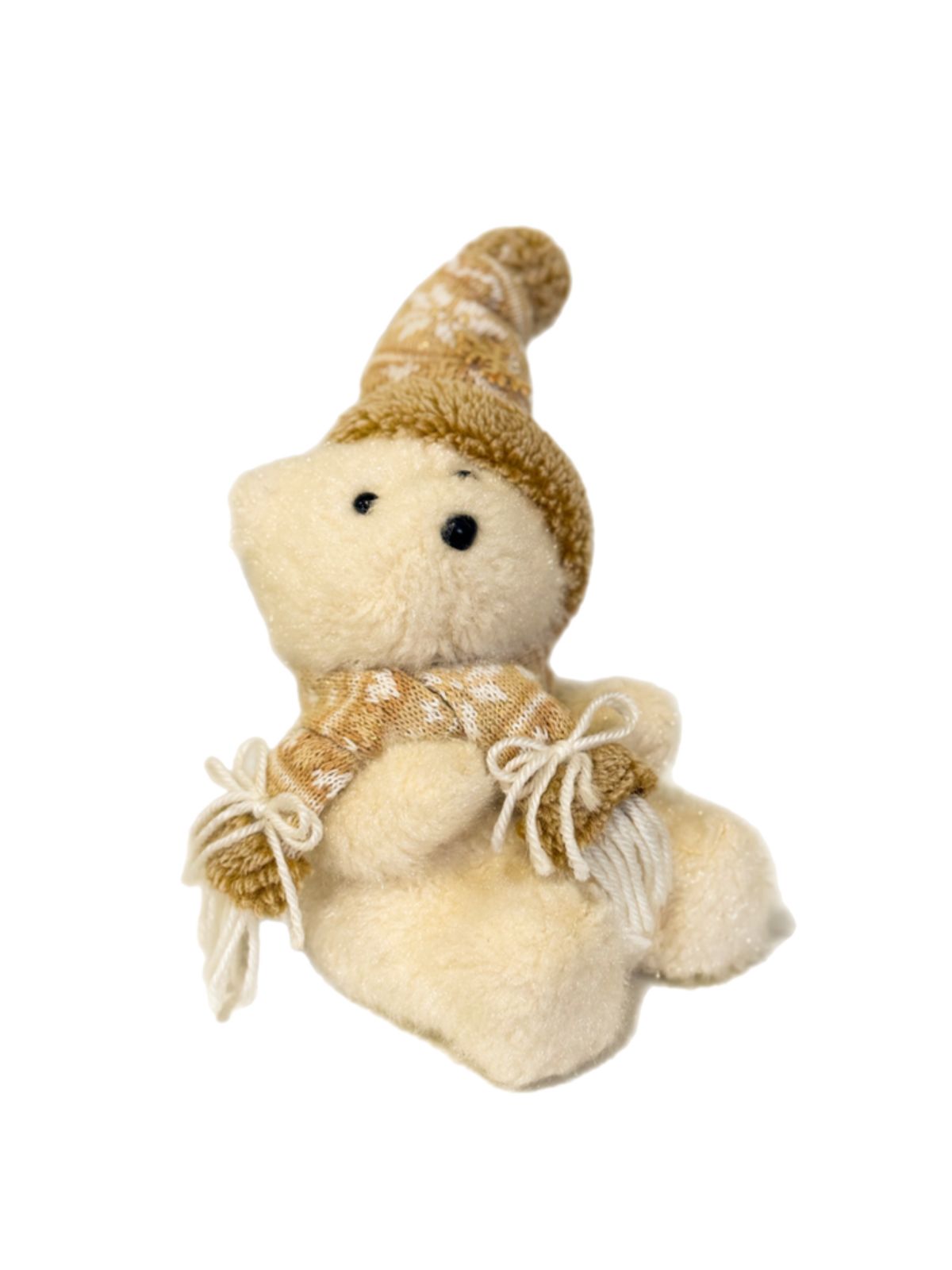 Transforme sua decoração natalina com o charme e a delicadeza do Urso de Natal Sentado Branco de 16cm da Tokdacasa.