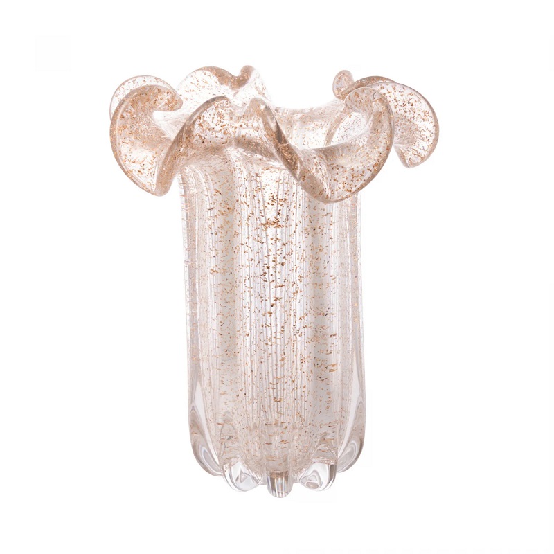 Vaso De Vidro Italy Transp. E Dourado 22x22x27cm – Wolff